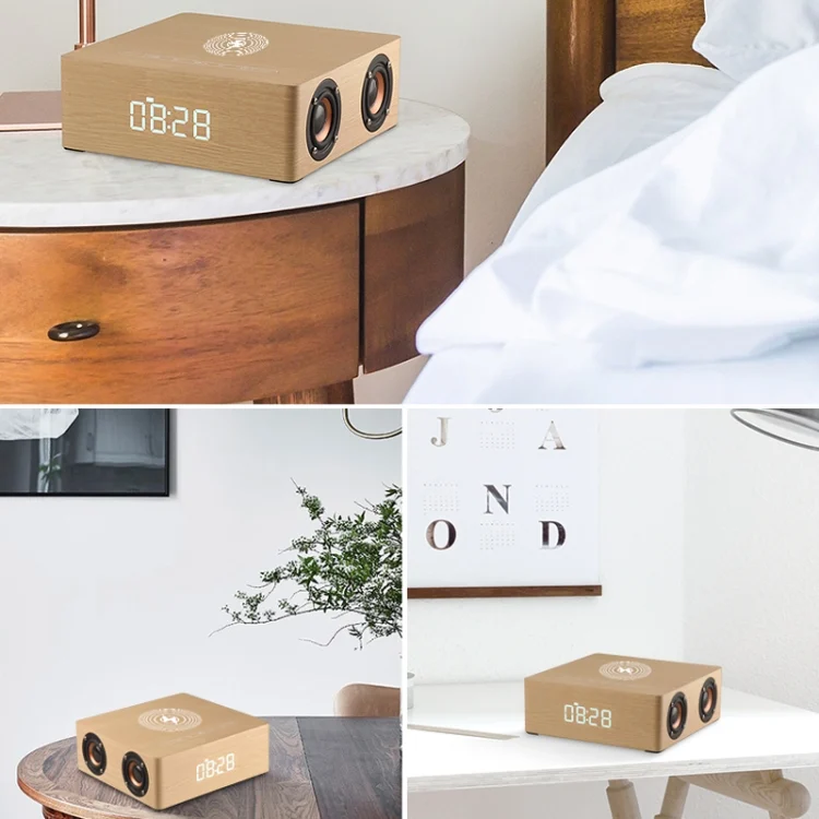 Q5A Multifunctional Wooden Touch Clock Display Wireless Charging Bluetooth Speaker, Support TF Card & U Disk & 3.5mm AUX, Q5A