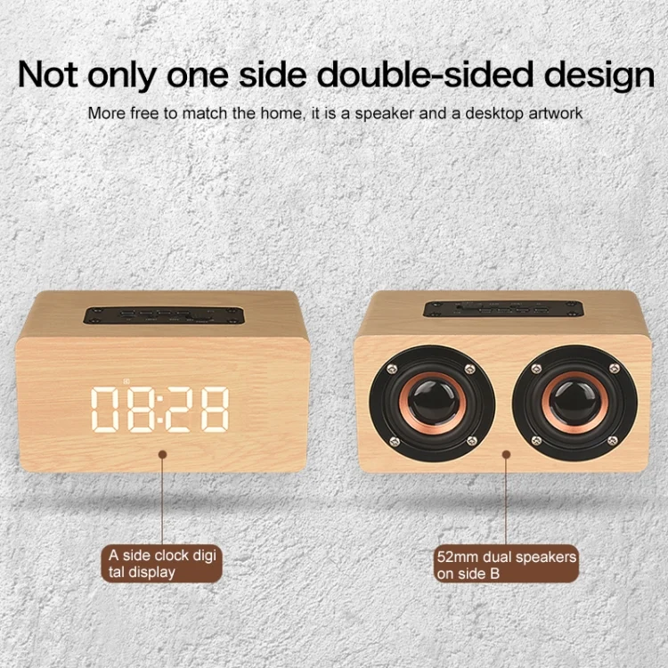 W5C Subwoofer Wooden Clock Bluetooth Speaker, Support TF Card & 3.5mm AUX, Brown Wood, Yellow Wood