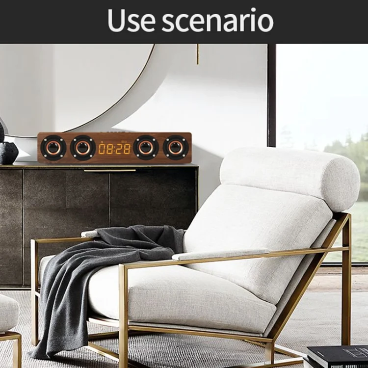 W8C Wooden Clock Subwoofer Bluetooth Speaker, Support TF Card & U Disk & 3.5mm AUX