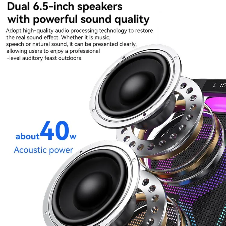 1. Powerful Outdoor Sound: Dual 6.5-inch speakers with 20W+20W output deliver robust audio performance for outdoor environments.