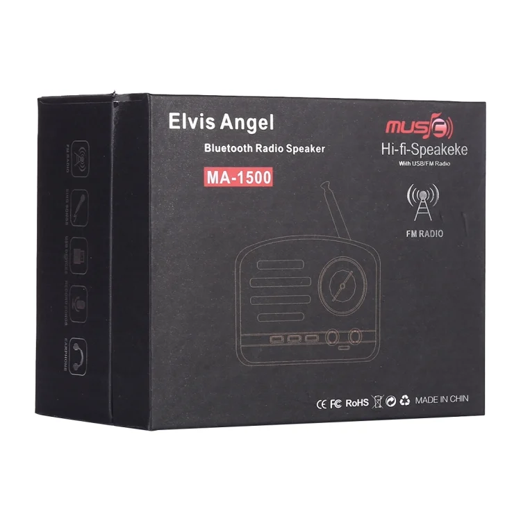 Angel MA-1500 Retro Bluetooth HiFi Radio Speaker with Colorful LED Light, Support USB & FM & 3.5mm Aux