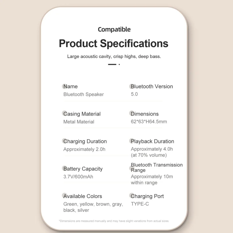 11.Product size: 6.2 x 6.3 x 6.5cm