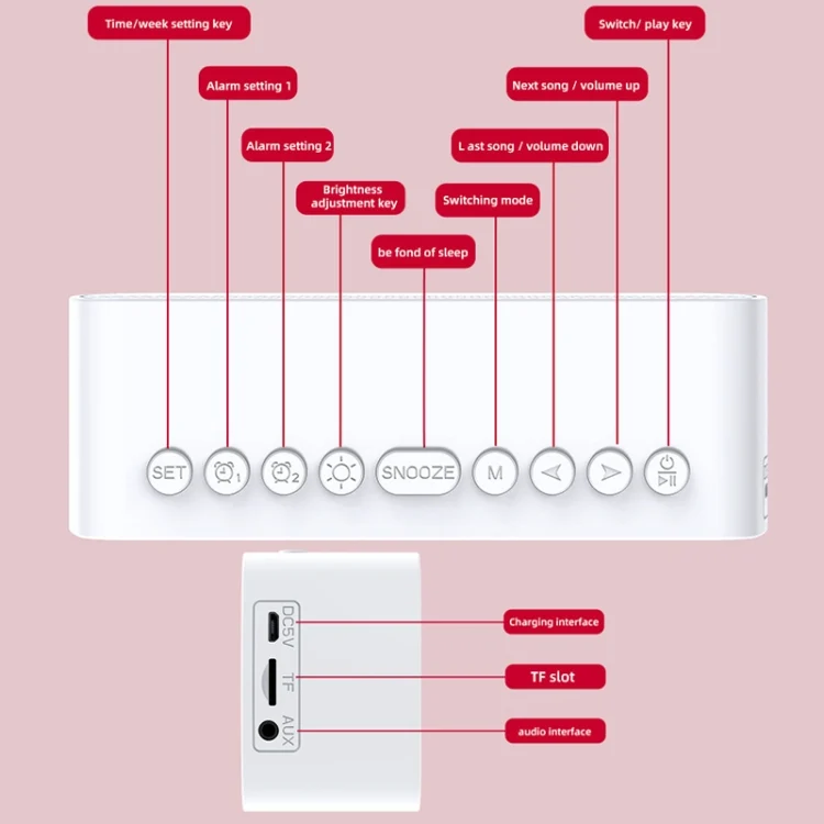 16. Two-in-one Bluetooth speaker and FM radio, listening to FM radio anytime, anywhere17. Indoor temperature display alarm, the number is large enough to be clear at a glance