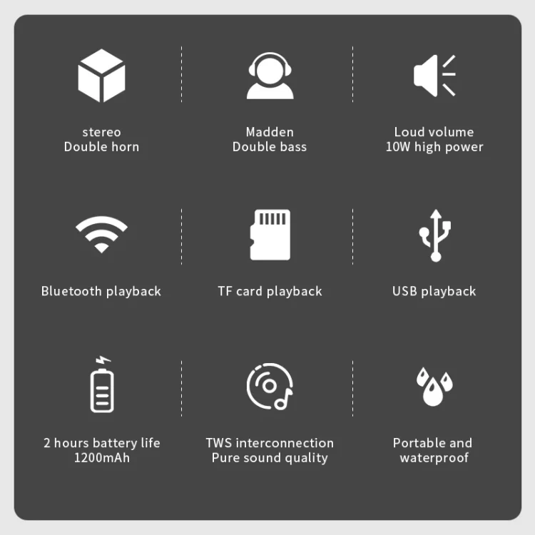 1. Bluetooth / AUX audio input / USB flash disk / FM radio / TF card playing function of arbitrary switching.
