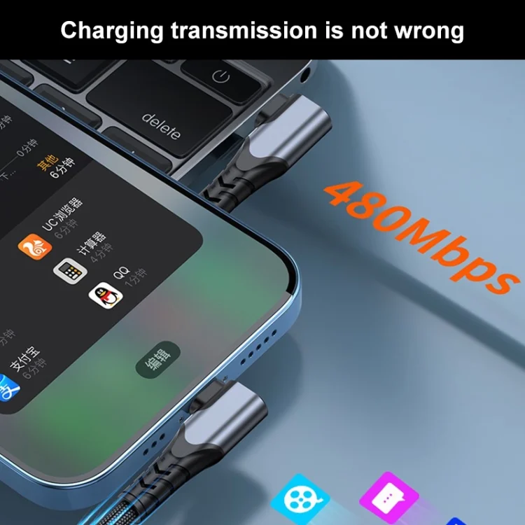 ADC-009 20W USB-C/Type-C to 8 Pin Double Elbow Data Cable, 0.4m, 1m, 2m