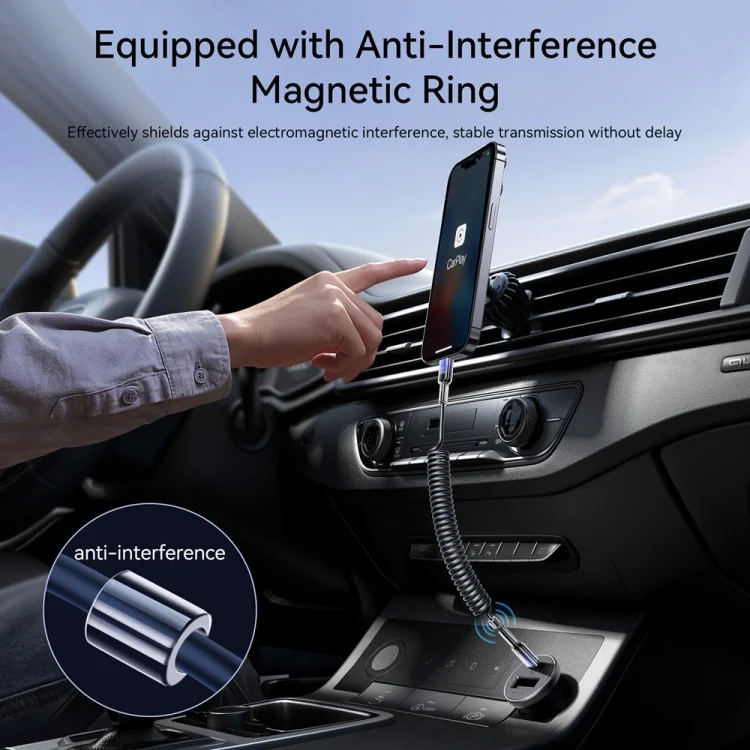 6. Equipped with anti-interference magnetic ring, effectively shielding electromagnetic interference, CarPlay transmission is stable and without delay