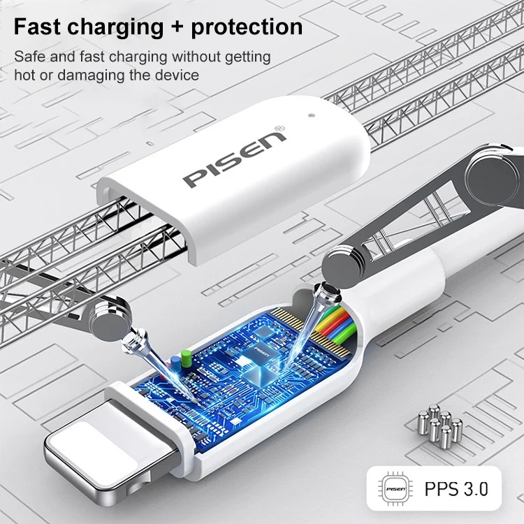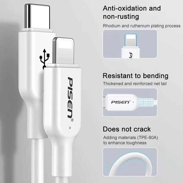 PISEN 3.0A PD Fast Charging Cable, 1m Type-C to 8 Pin