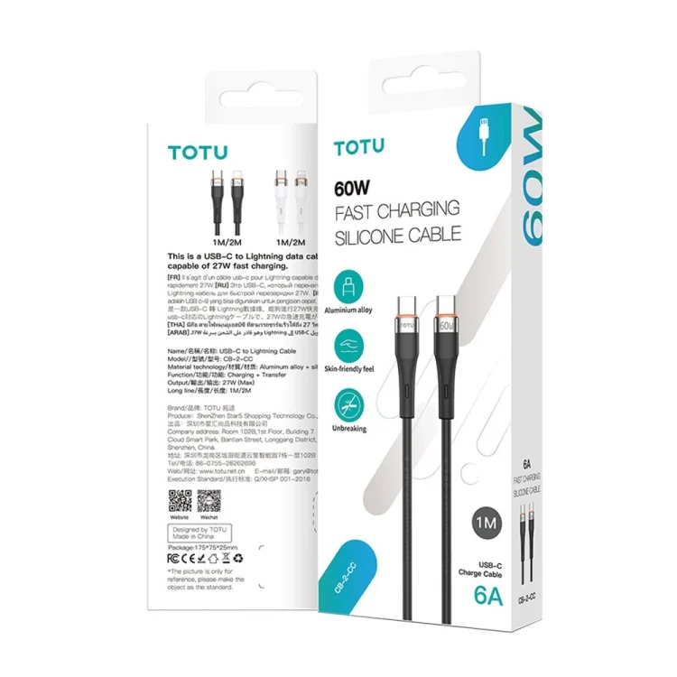 TOTU CB-2 Series USB-C / Type-C to 8 Pin Aluminum Alloy Skin Feel Charging Data Cable, 1m, 2m