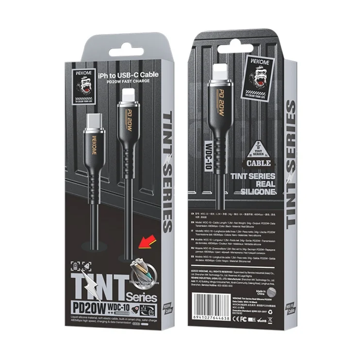 WK WDC-10 PD 20W USB-C/Type-C to 8 Pin Silicone Data Cable, Length: 1.2m, WDC-10