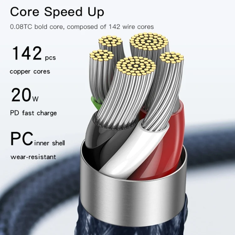 3. Pure copper wire core, increase the conduction area, reduce resistance, and increase charging speed.