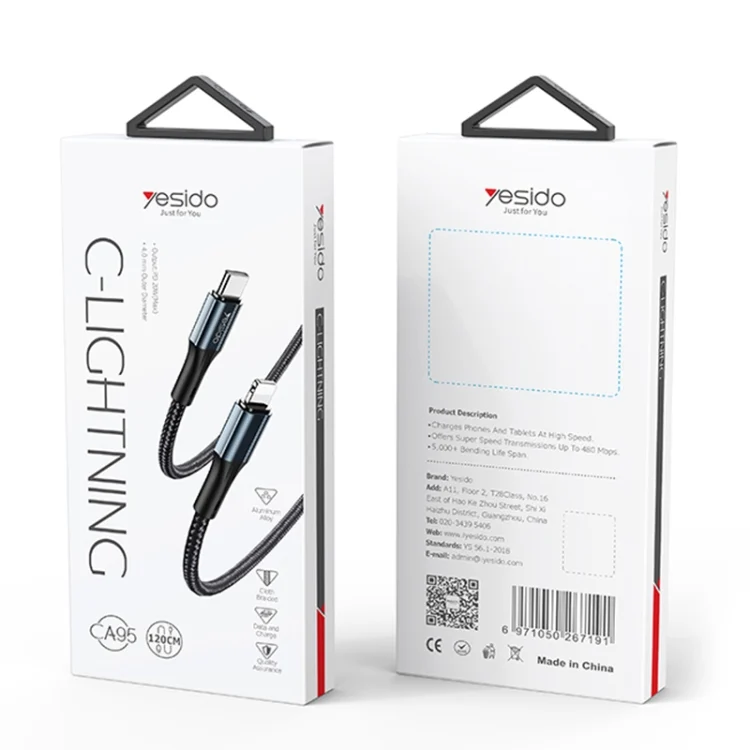 Yesido CA95 3A 20W USB-C / Type-C to 8 Pin Fast Charging Cable, Length: 1.2m