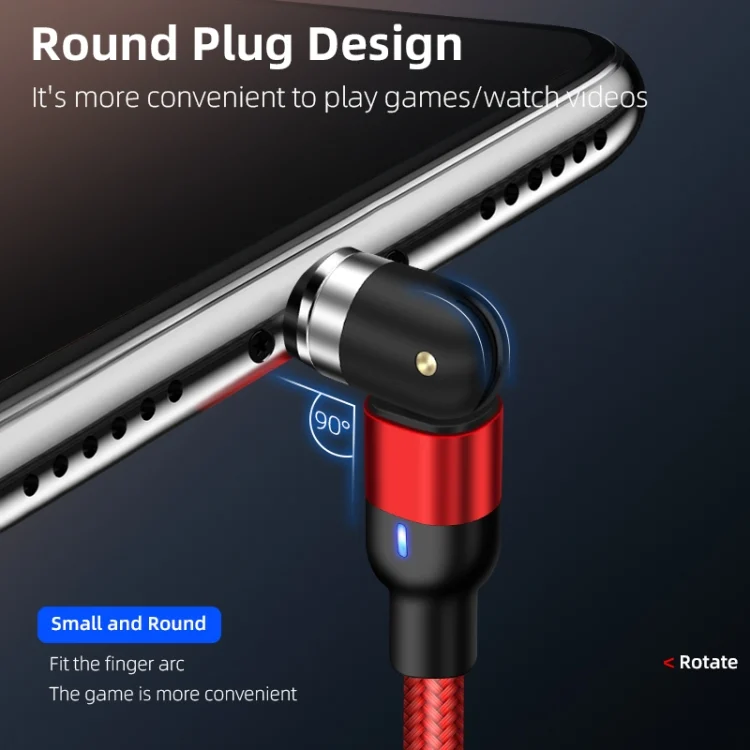 1m 2A Output USB to 8 Pin Nylon Braided Rotate Magnetic Charging Cable, 1m 8 Pin