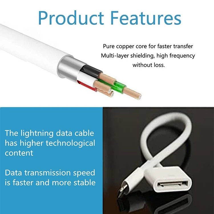 8 Pin Male to 30 Pin Female Sync Data Cable Adapter, Cable Length: 14cm(White)