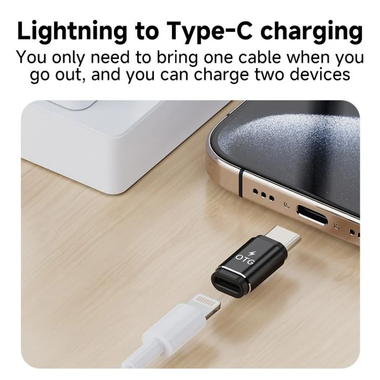 8 Pin to Type-C OTG Adapter, 8 Pin to Type-C(Black)
