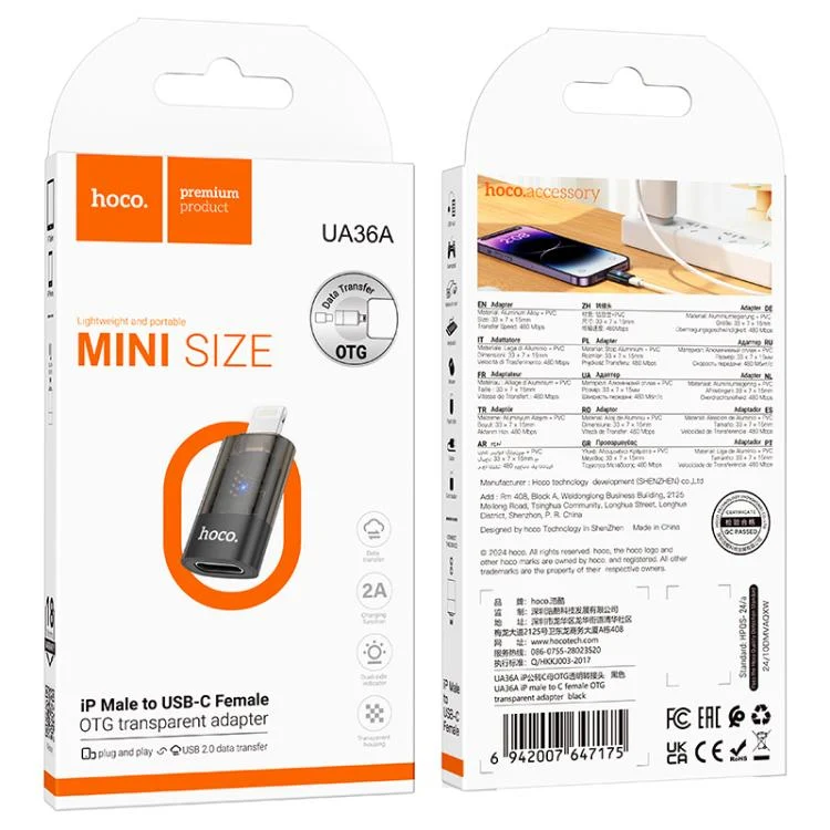 hoco UA36A 8 Pin Male to USB-C / Type-C Female OTG Transparent Adapter, 8 Pin Male to USB-C / Type-C Female