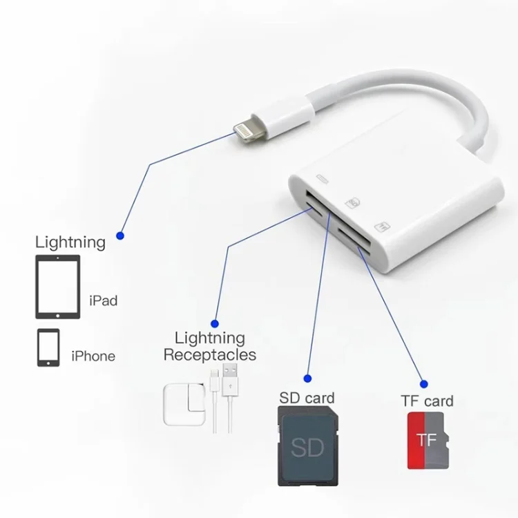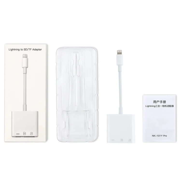 NK-101Y Pro 8 Pin to 8 Pin + SD + TF Port 3 in 1 Camera Reader Adapter