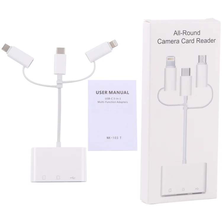 NK 103T 8 Pin + USB-C / Type-C + Micro USB to USB + SD / TF Card Camera Adapter