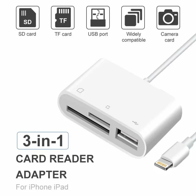 1. This 3 in 1 camera connection kit adapter, downloading photos from your digital camera to your iPad / iPhone is very easy