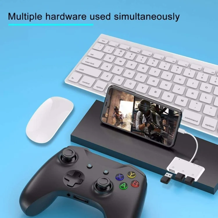 2. Through 3 USB OTG ports, you can connect the mouse and keyboard to mobile phones and tablets with 8 Pin interface at the same time