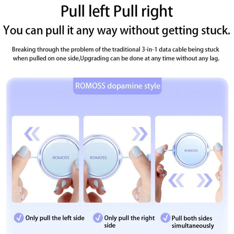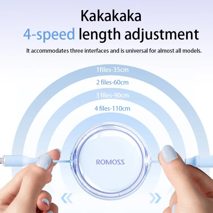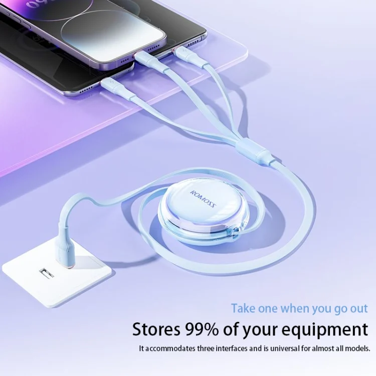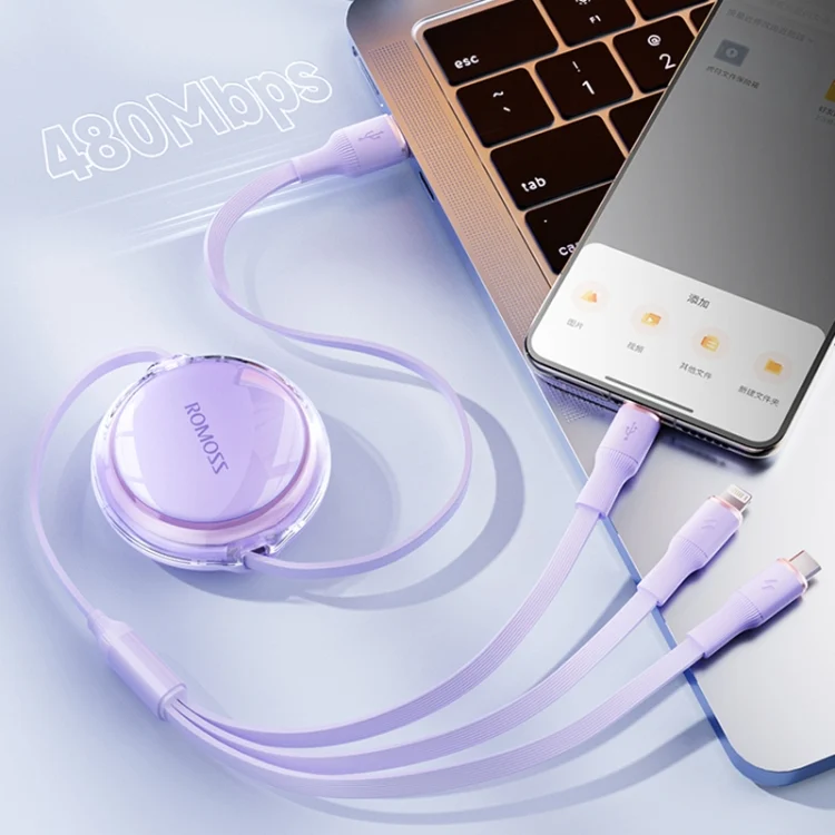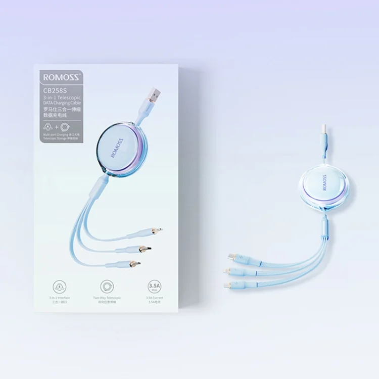 ROMOSS CB258S 3.5A 3-In-1 Telescopic Data Charging Cable USB-A To Type-C & 8 Pin & Micro Wire, 3.5A USB-A To Type-C & 8 Pin & Micro
