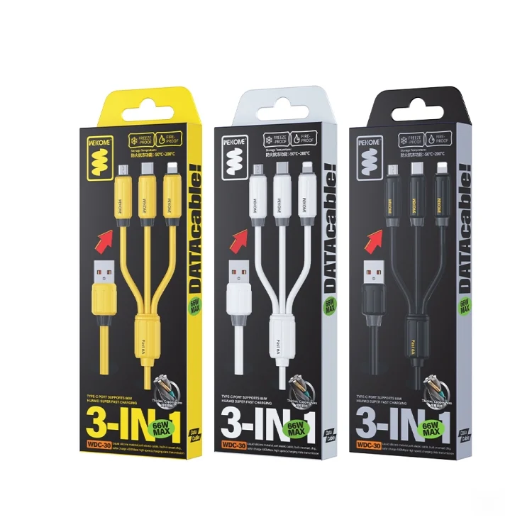 WK WDC-30 Elastic Silicone 1.2m 66W USB to 8 Pin / Type-C / Micro USB Fast Charging Data Cable, WDC-30