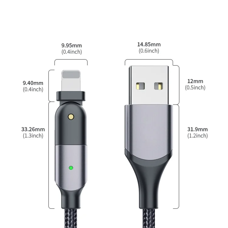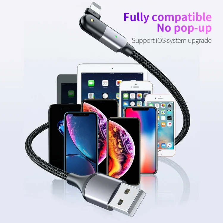 2.4A USB to 8 Pin 180 Degree Rotating Elbow Charging Cable, 1.2m 8 Pin, 2m 8 Pin