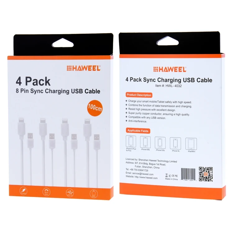 4 PCS HAWEEL 1m High Speed 8 pin to USB Sync and Charging Cable Kit for iPhone, iPad(White)