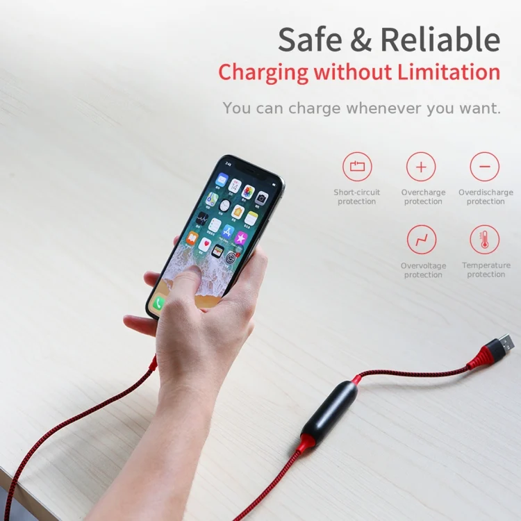 4. The IC chip in the connector of the cord stops the power supply to the device 30 mins after the device gets completely charged, thus protecting the device form problems arising due to over-charge such as heating, decreased battery life and efficiency.