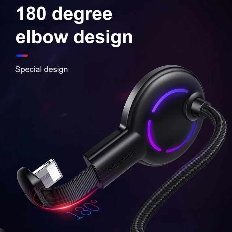 Mcdodo CA-5950 Razer Series 180 Degree Elbow Design Gaming 8 Pin to USB Cable with 7 Colors Breathing Light, Length: 1.2m