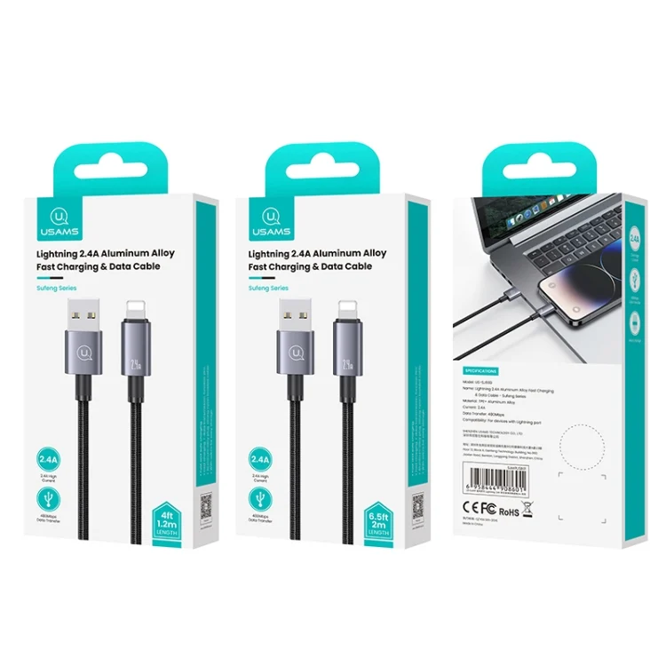 USAMS US-SJ667 USB To 8 Pin 2.4A Fast Charge Data Cable, Length: 1.2m, US-SJ667