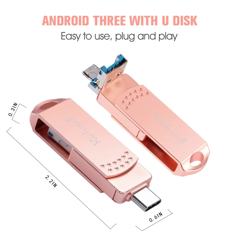 Richwell 3 in 1 64G Type-C + Micro USB + USB 3.0 Metal Flash Disk with OTG Function