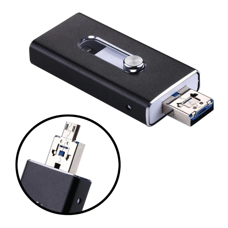 RQW-02 3 in 1 USB 2.0 & 8 Pin & Micro USB 128GB Flash Drive(Black)