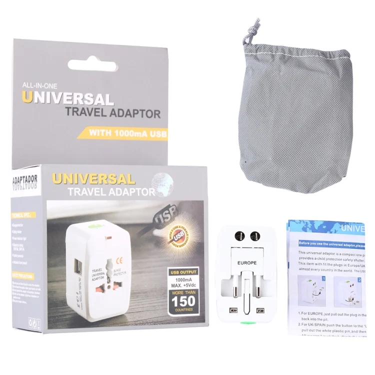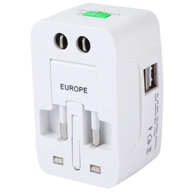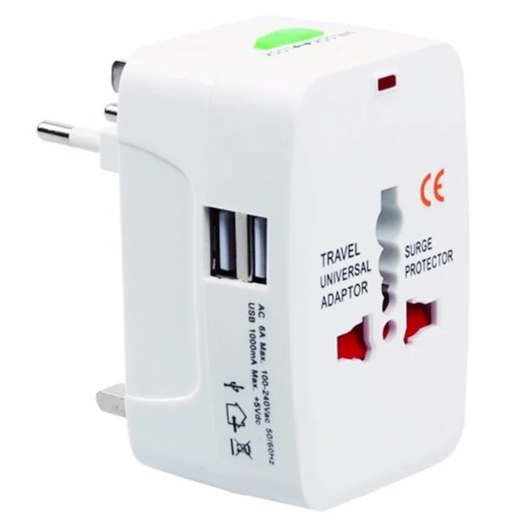 110-250V Multi-function Travel Universal Converter with Dual USB Interfaces, EU / UK / US / AU Plug