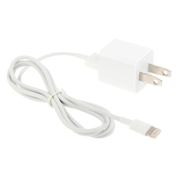 2 in 1 5V 1A US Plug Travel Charger Adapter with 1m 8-pin Cable For iPhone