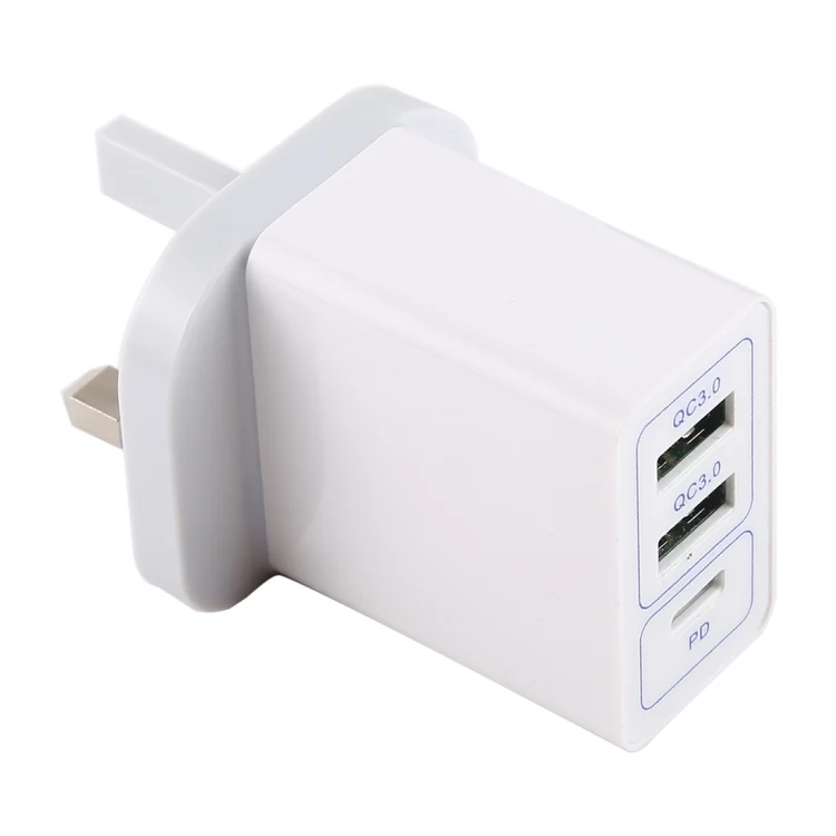 3A Max Output USB-PD + Dual QC3.0 USB Ports Travel Fast Charger, UK Plug