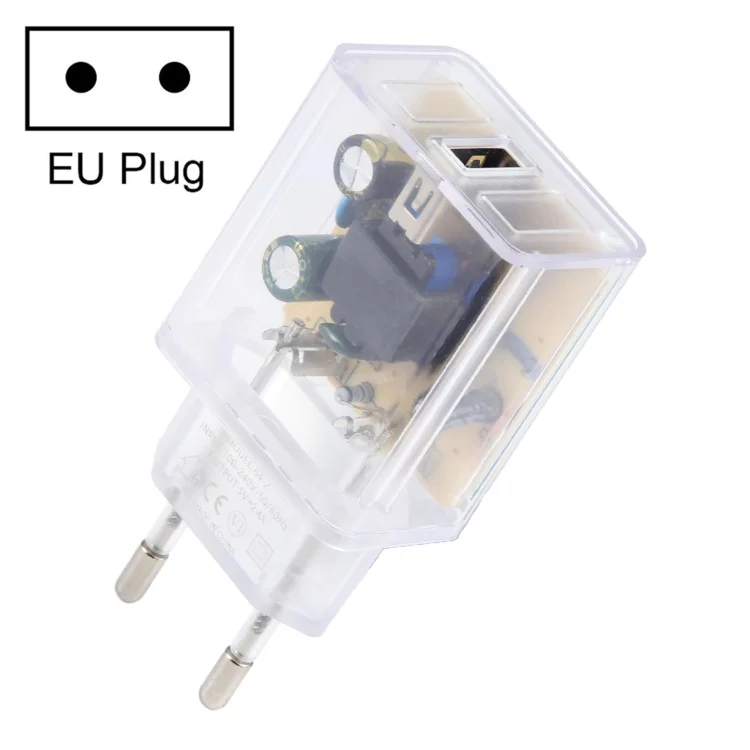64-2 2A USB Transparent Charger, Specification: EU Plug