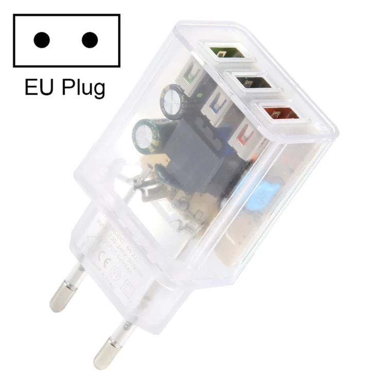 64-222 2A Three USB Transparent Charger, specification: EU Plug