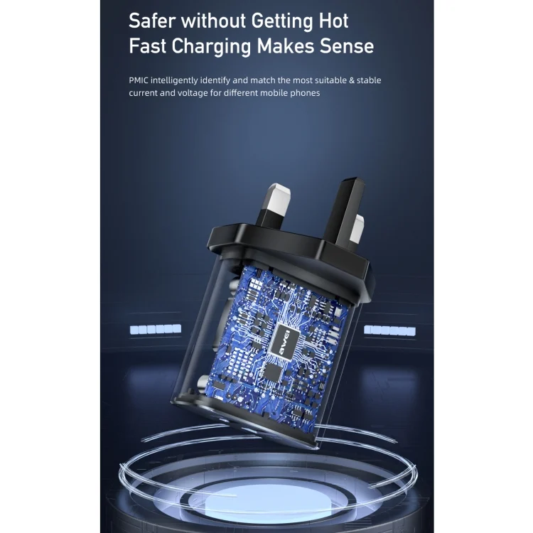 awei PD8 20W QC + PD Fast Charging Travel Charger Power Adapter, UK Plug, UK Plug