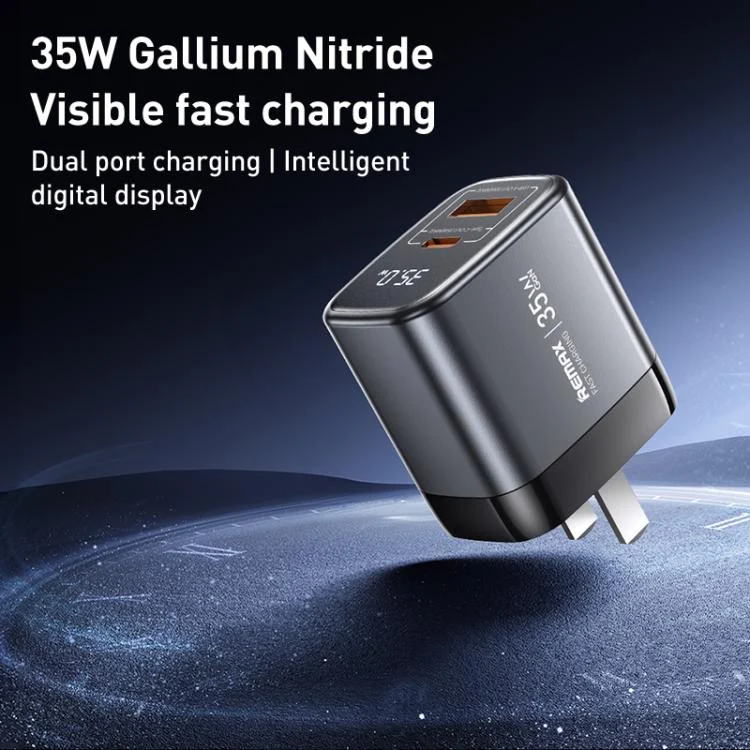REMAX U2-AC 35W USB and Type-C GaN Digital Display Fast Charger, EU Plug, UK Plug