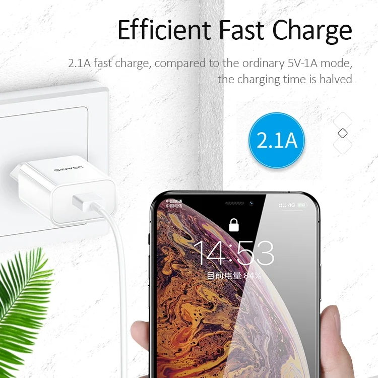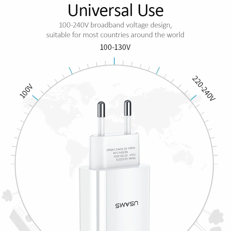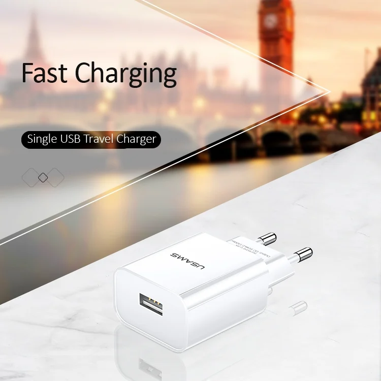 USAMS US-CC075 T18 2.1A Single USB Travel Charger, EU Plug, EU Plug