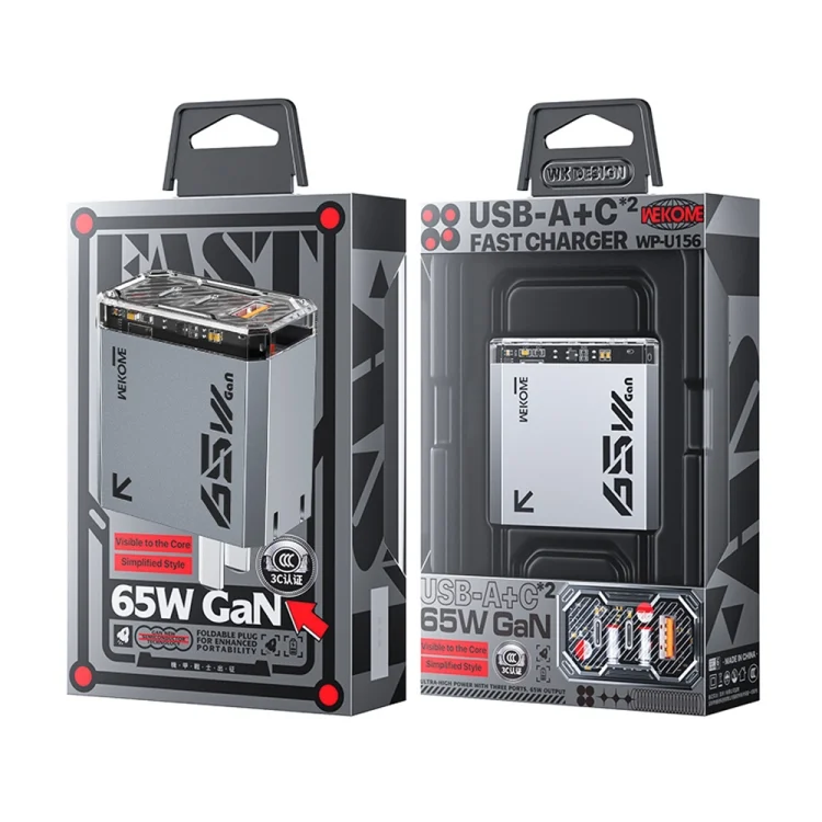 WK WP-U156 Pioneer Series 65W USB+Dual USB-C/Type-C GaN Charger, WP-U156