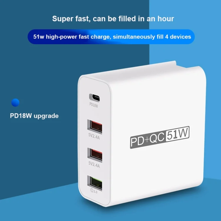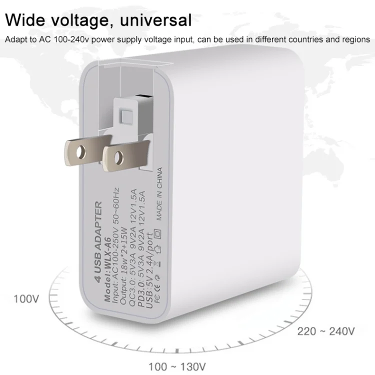 WLX-A6 4 Ports Quick Charging USB Travel Charger Power Adapter, EU Plug