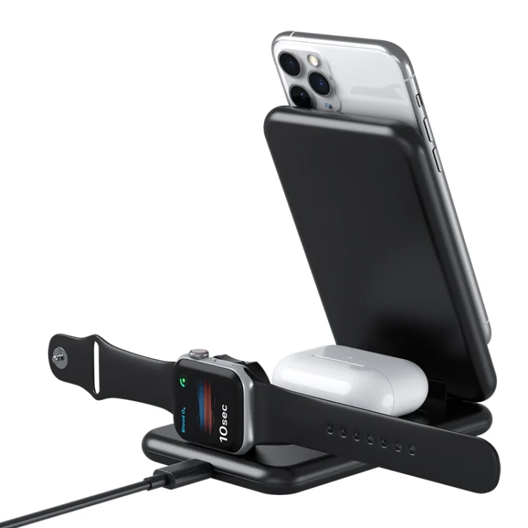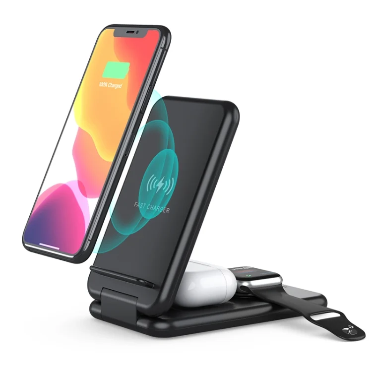 15W 3 in 1 Foldable Qi Fast Wireless Charger Station Phone Holder for iPhones & iWatchs & Airpods