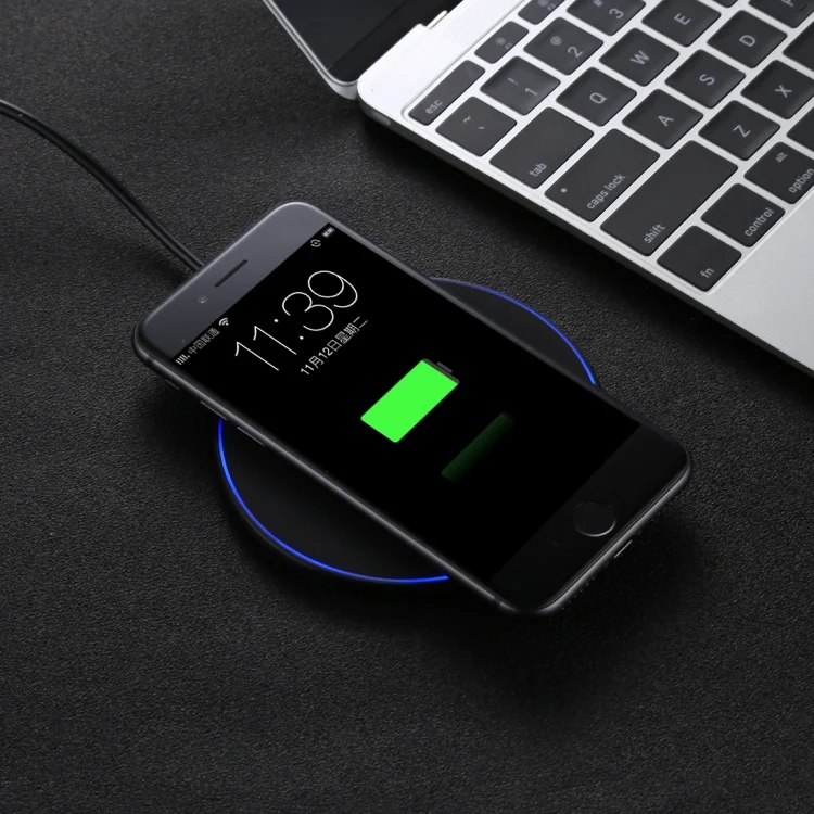 DC 9V 1.67A / 5V 1A Universal Round Shape Qi Standard Fast Wireless Charger with Indicator Light
