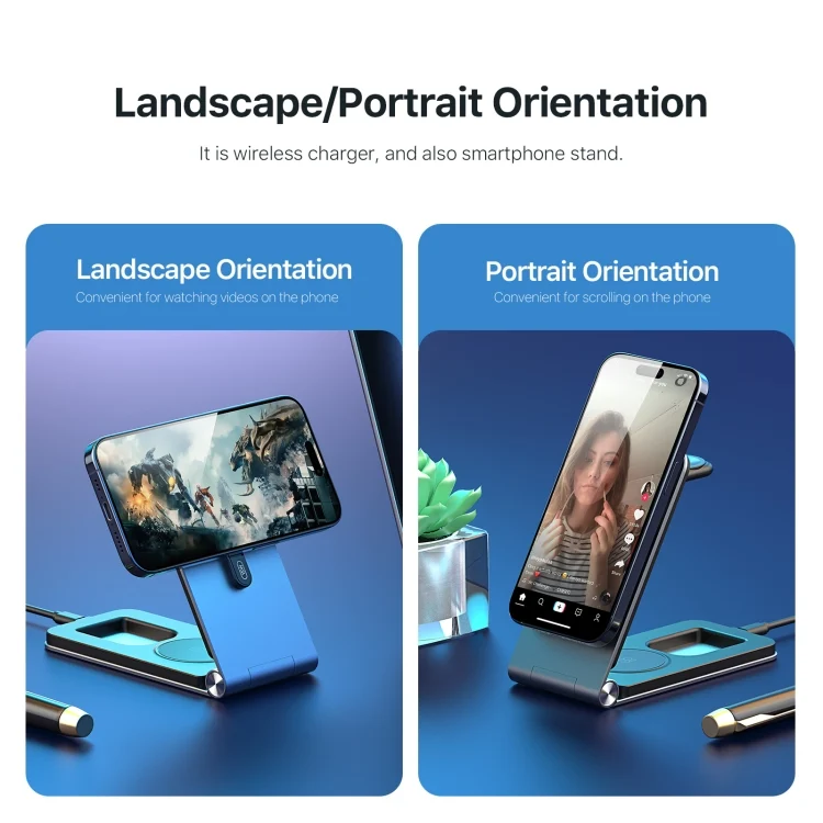DUZZONA W22 15W 3 in 1 Foldable Magnetic Wireless Charging Stand, W22