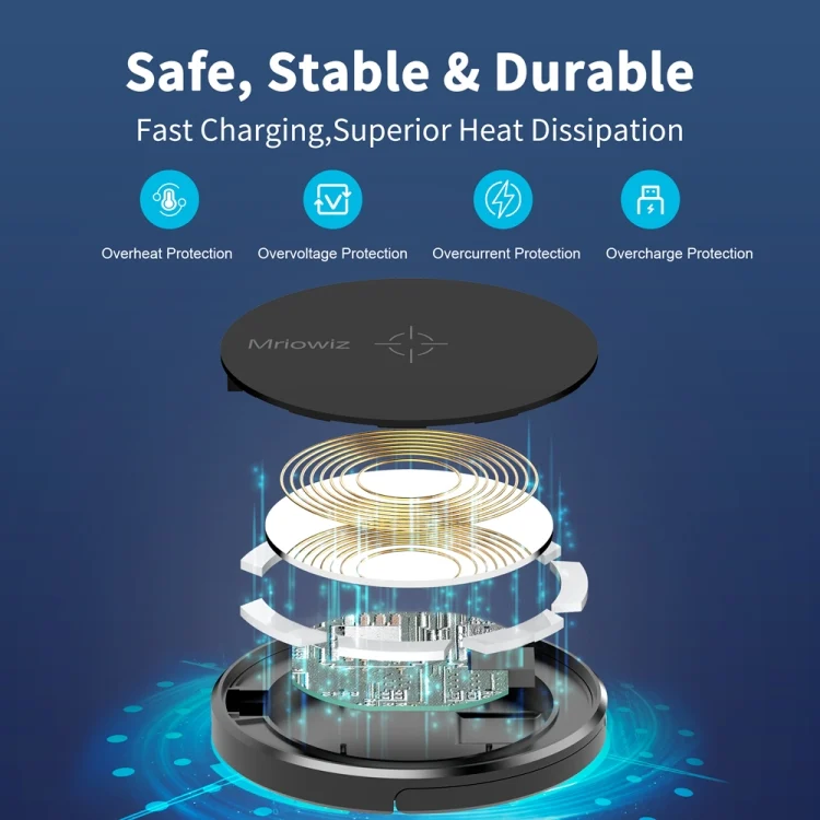 Mriowiz M-2001W 15W Desktop MagSafe Magnetic Wireless Charger , with USB + USB-C / Type-C Data Cable & Holder