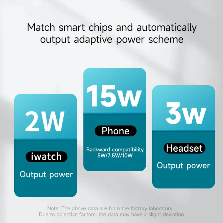 4. Charging power: mobile phone: 15W / watch: 2.5W / earphone: 3W