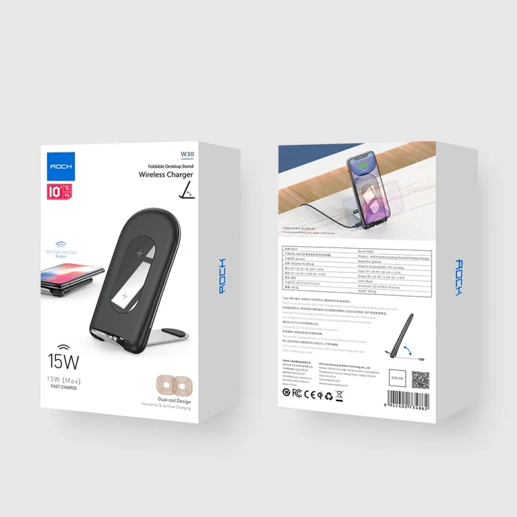 ROCK W30 15W Mobile Phone Wireless Charger Foldable Desktop Holder