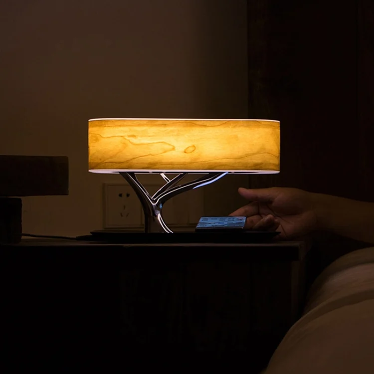 Tree Light Bluetooth Speaker Desk Lamp Phone Wireless Charger, US Plug