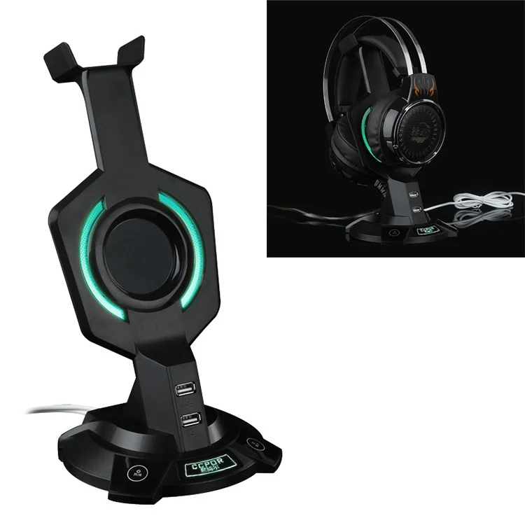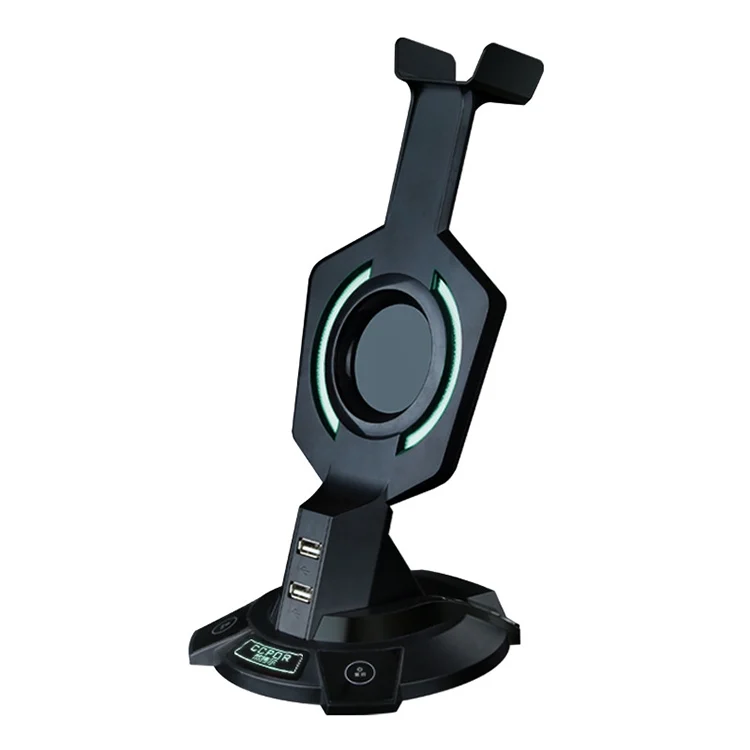 R-008-02 Luminous Integrated Mecha-shaped Headset Holder with Dual USB Ports & Computer Switch